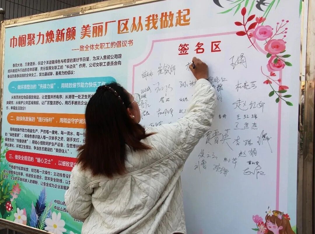 女職工委員會積極響應(yīng)公司全面推進現(xiàn)場環(huán)境整治攻堅行動,啟動“巾幗聚力煥新顏”女職工現(xiàn)場環(huán)境提升行動,女職工代表宣讀了倡議書,參會女工響應(yīng)公司女工委號召,紛紛在《巾幗聚力煥新顏 美麗廠區(qū)從我做起》倡議展板上簽字,表示要爭做環(huán)境整治的“先鋒力量”、做綠色發(fā)展的“踐行標桿”、做安全規(guī)范的“暖心衛(wèi)士”,以實際行動融入中心工作,助力改革發(fā)展。